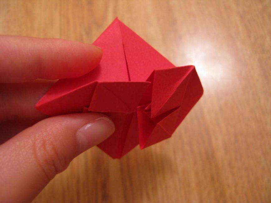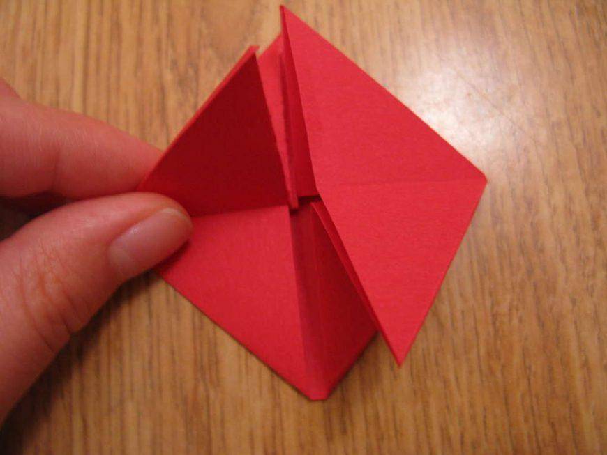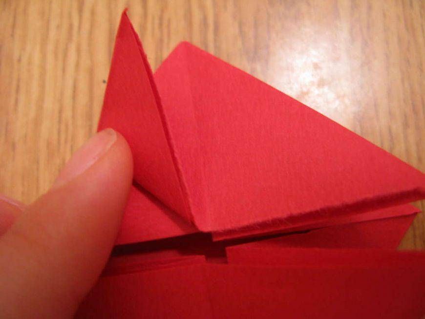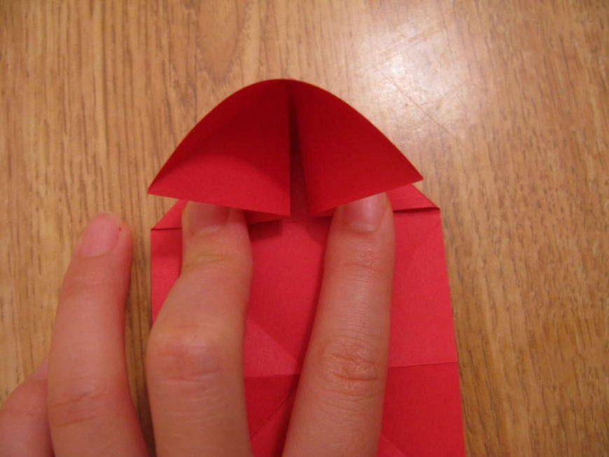 - 11. Аккуратно поместить верхние углы во внутрь полосок по линиям сгиба.