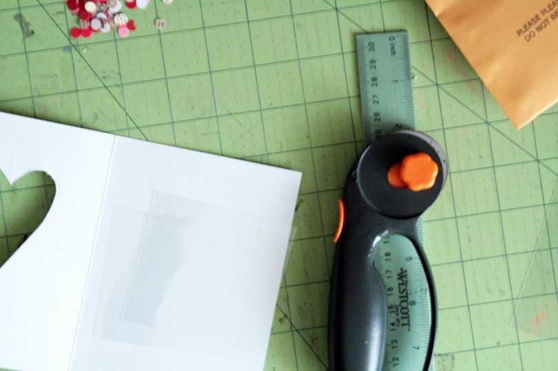 - Возьмите картон красного цвета и сложите его пополам. Вырежьте сердце.