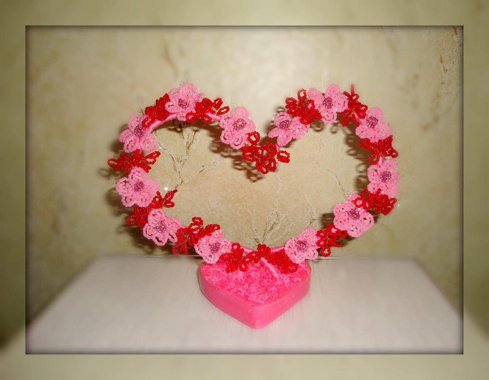 Если вы умеете плести из бисера, то здорово будет подарить сердечко в этой технике: