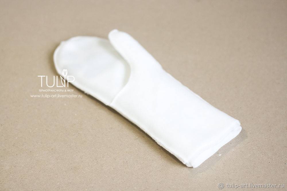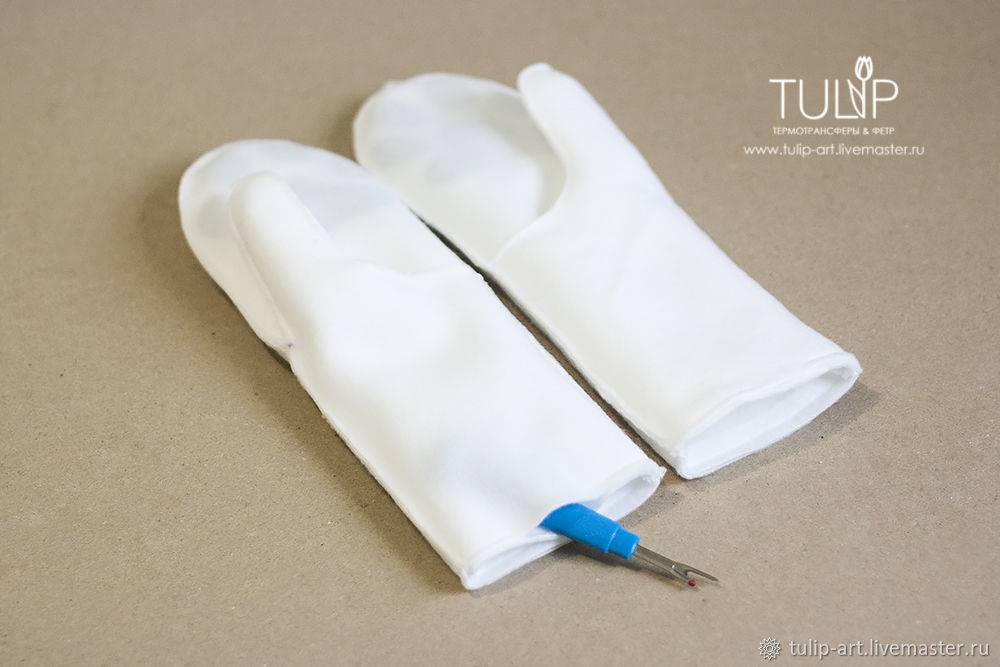 Когда все детали будут соединены, варежку аккуратно выверните на лицо