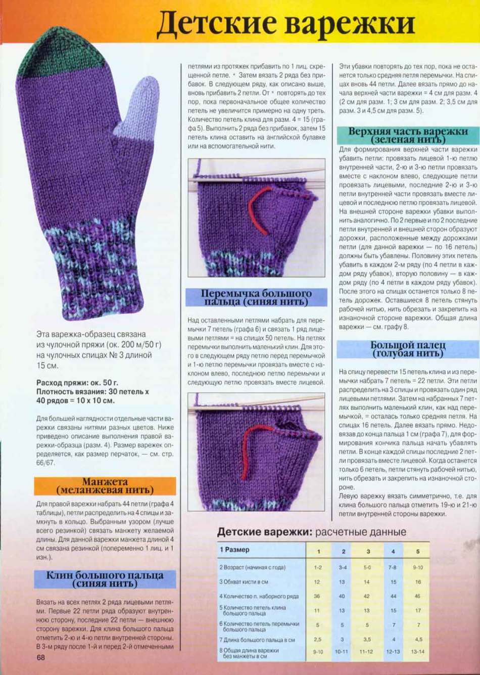 Двойные варежки спицами теплые для девочек и мальчиков от 1 до 10 лет описание