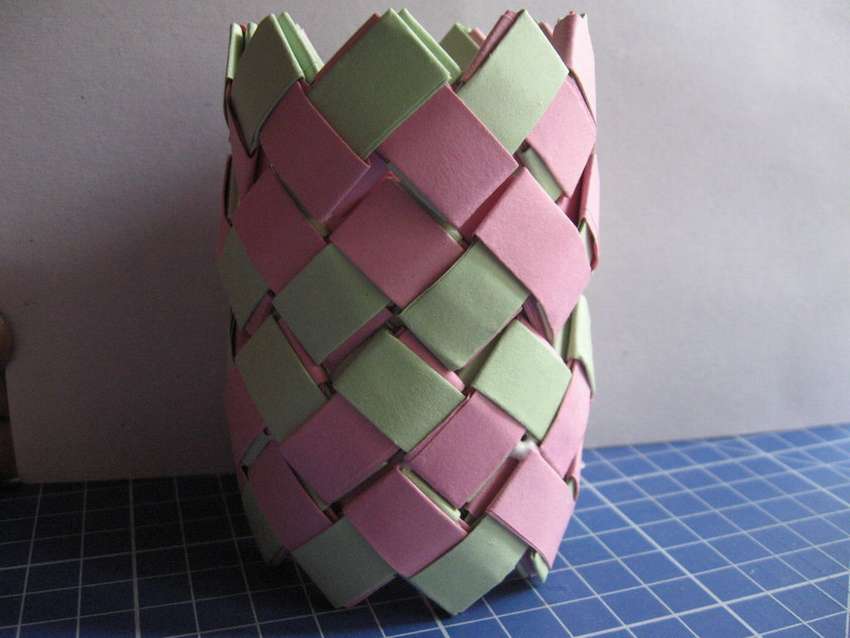 - Нарезать по 36 заготовок каждого цвета. Стандартные размеры заготовок – 12,5 х 5 сантиметров. Но при желании эту вазу можно сделать в два раза больше. То есть, размеры заготовок должны быть 25 х 10 сантиметров.