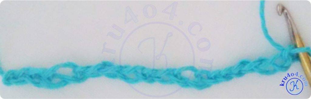 Цепочка из воздушных петель перекручивается в процессе вязания