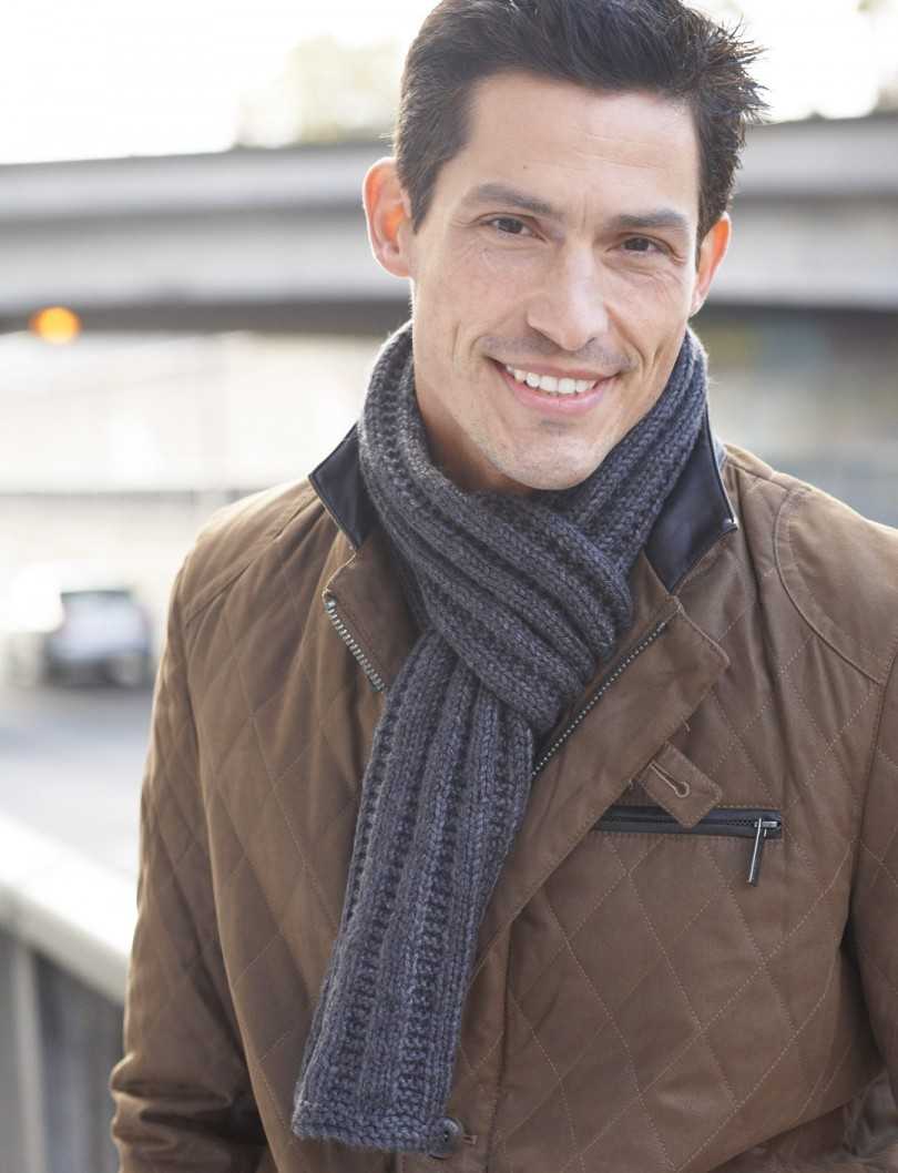 Рассмотрим варианты мужских шарфов. Очень популярны модели, связанные резинкой, косами, аранами, двусторонним рисунком, жаккардовым узором или орнаментом.