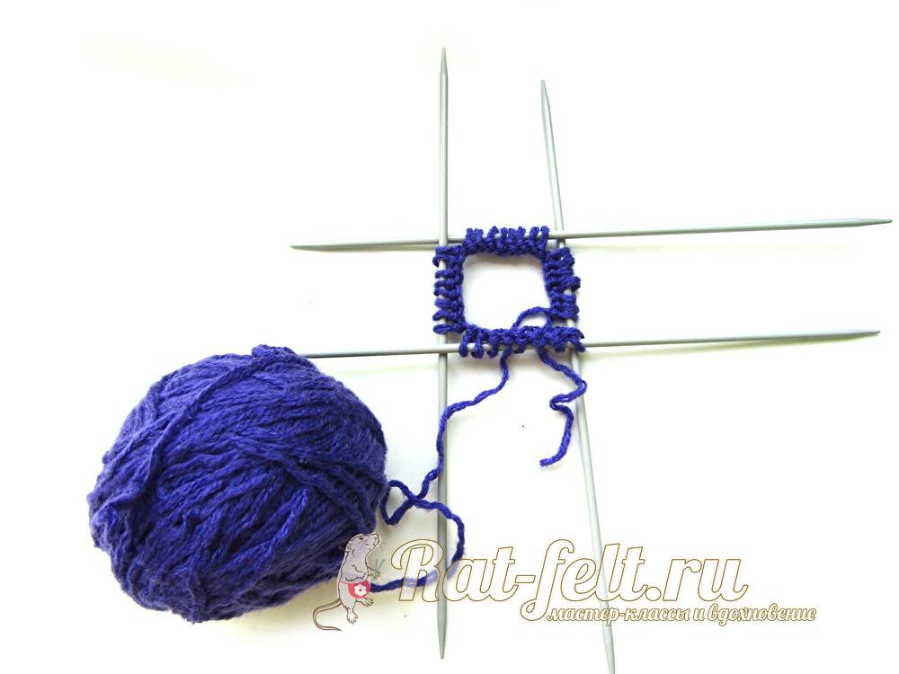 Первым делом набираем петли на 2 спицы, затем одну вытягиваем. Теперь нужно поровну распределить петли на 4 спицы. Пятая остается рабочей. Начинающие вязальщицы могут просто перенести их с начальной спицы, а более смелые сразу приступают к вывязыванию первого ряда. Когда первый ряд закончен, нужно соединить полотно в круг.