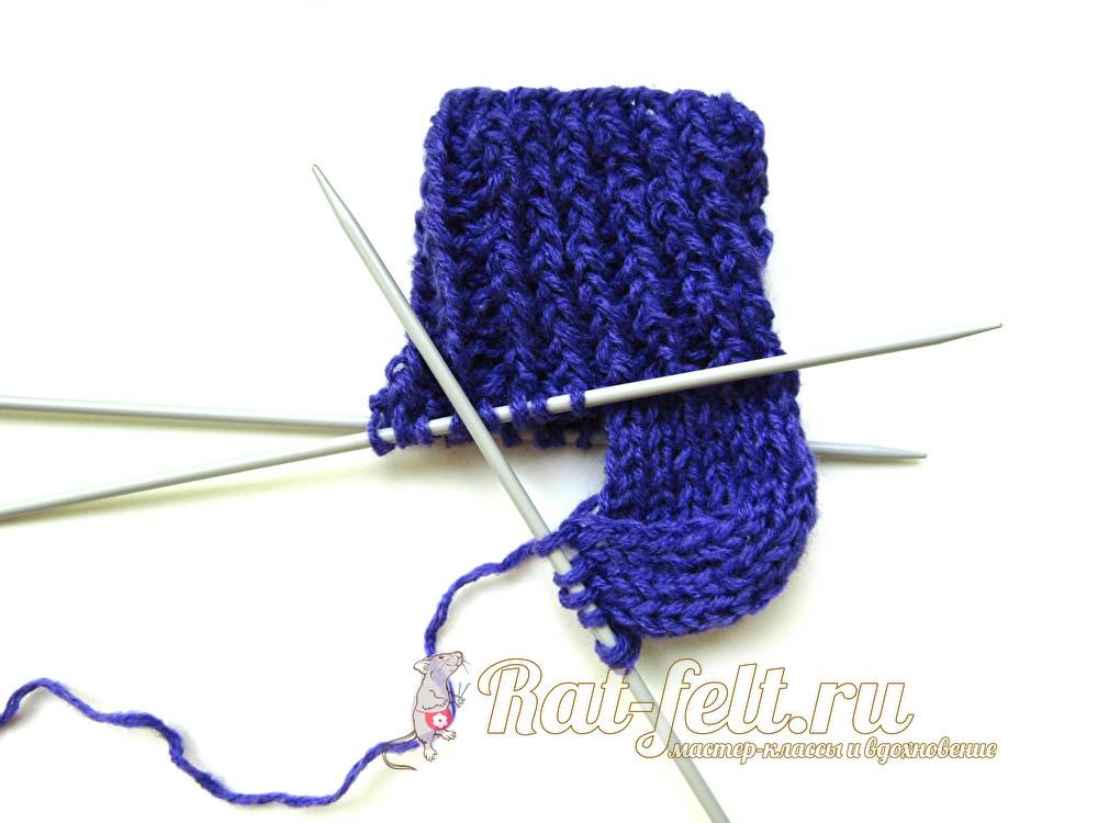 Вязание пятки носка спицами.