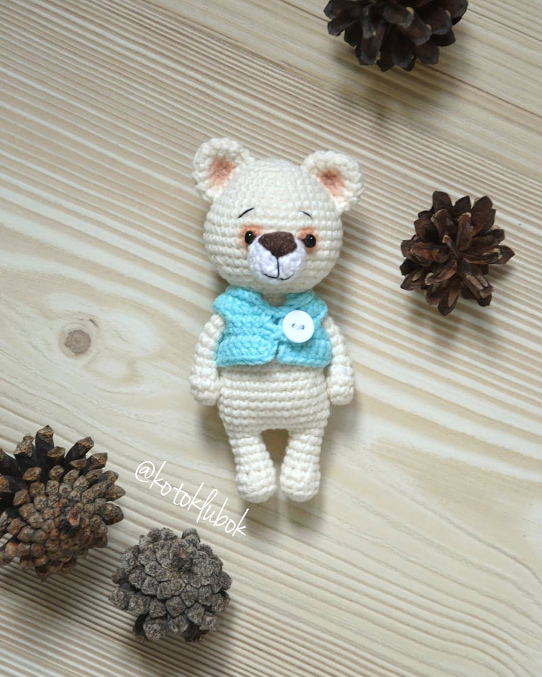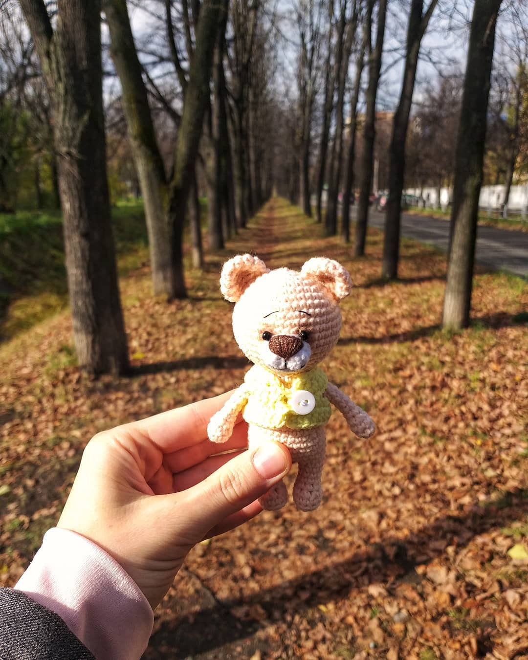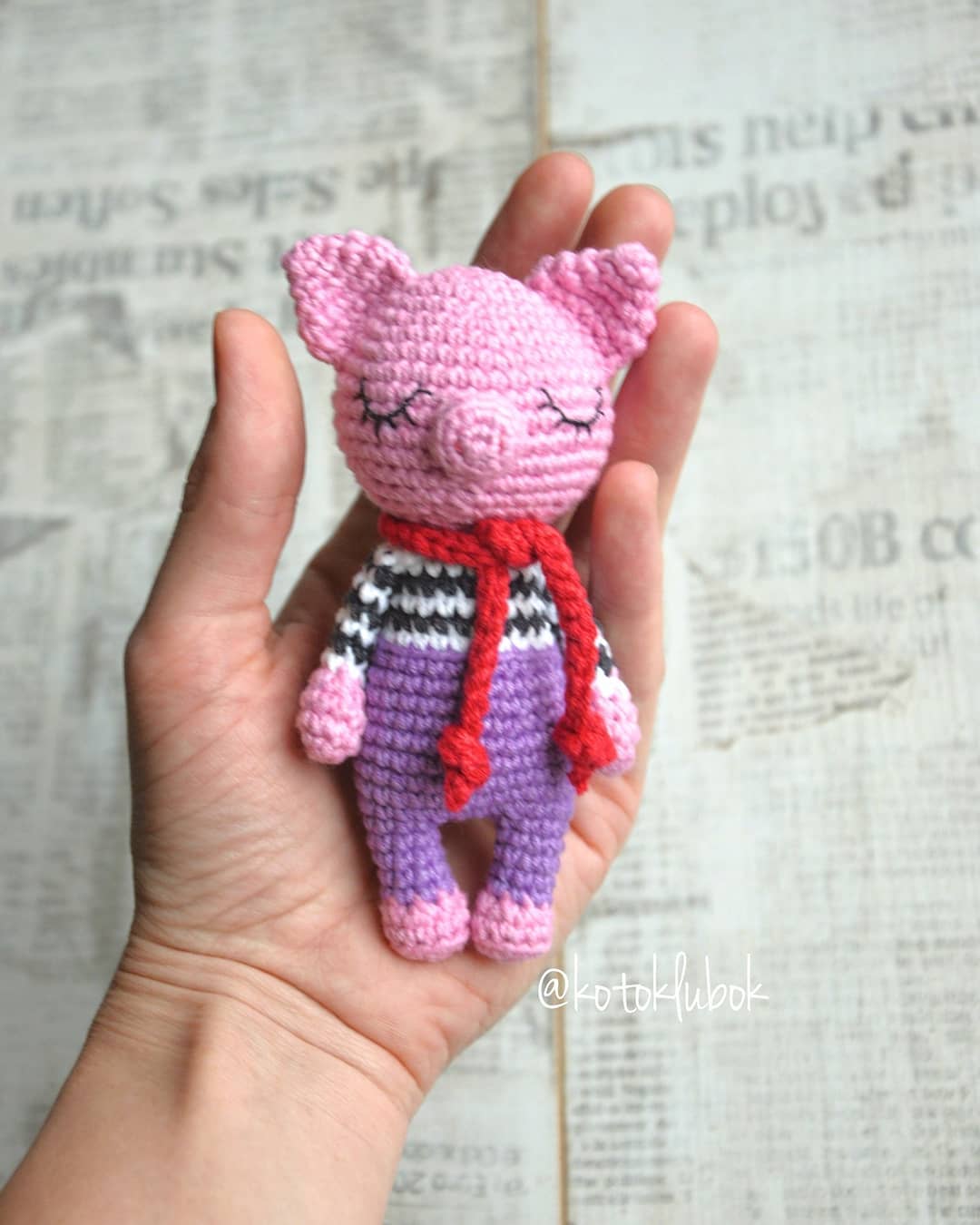Для придания миловидности игрушкам их туловище и конечности делают маленькими, а голову – большой. Образ дополняют украшениями и глазками. Все детали выполняют по отдельности, а потом их сшивают. Еще в процессе вязки зверюшек наполняют синтепоном.