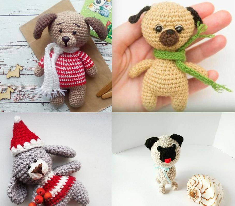 Вязаные собаки крючком амигуруми к Новому году с описанием и схемами работы