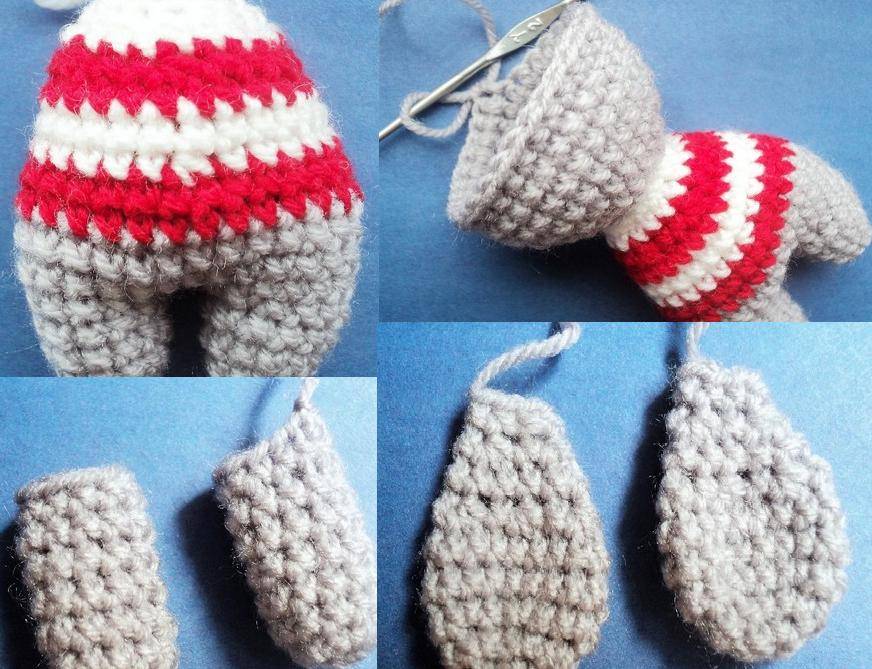 Начните поделку с лапок, свяжите две одинаковые лапки, а потом соедините их между собой.