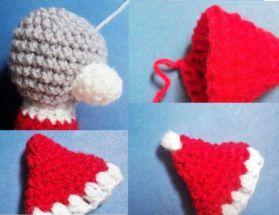 После того, как свяжете туловище свяжите две лапки и ушки, а после мордочку и красный колпачок, как у Деда Мороза или Санта Клауса.