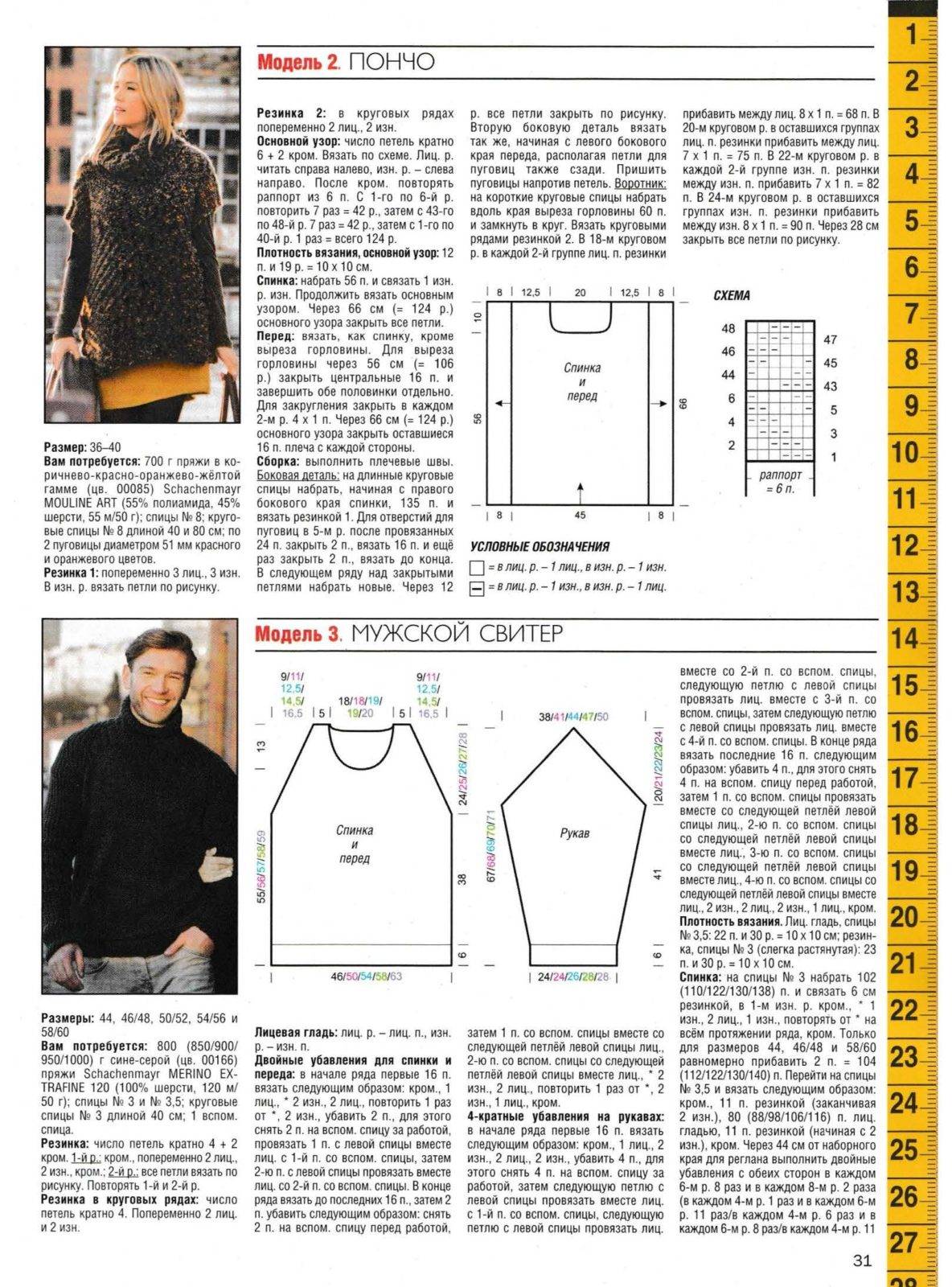 Плотность вязания. Жаккардовый узор: 19,5 п. и 22,5 р. = 10 х 10 см: узор из кос: 20 п. и 23.5 р. = 10 х 10 см.
