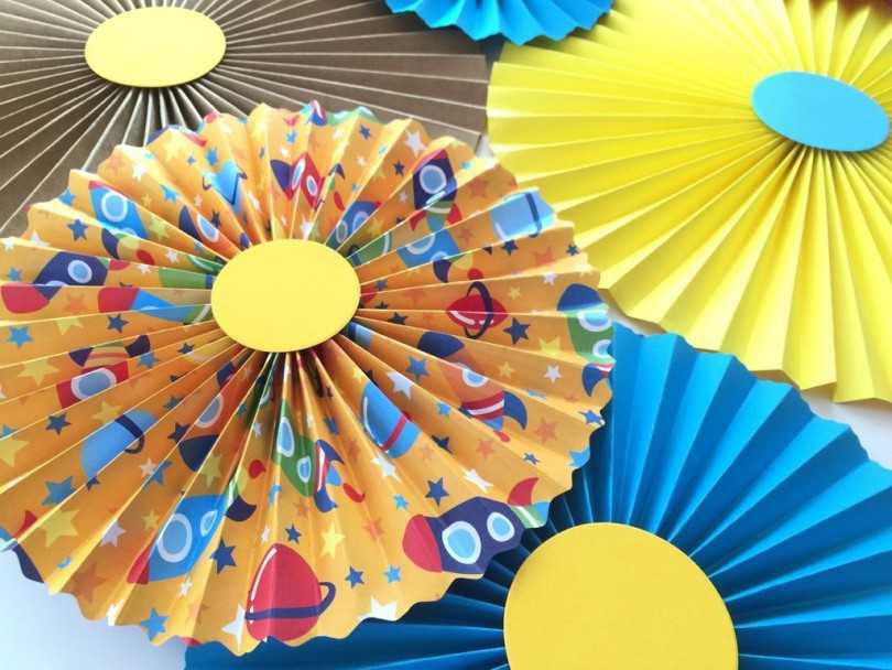 Бумажные веера будут хороши в качестве украшающего элемента на любом празднике. Эти разноцветные круги приводят в восторг всех детишек и гостей. Не оставляйте вашего ребенка в стороне от праздничных приготовлений и украсьте помещение для праздника вместе с ним. Уверена, что детям очень понравится делать такие вертушки своими руками.