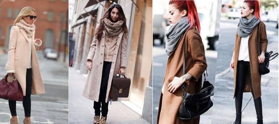 Например, черный или серый классический шарф прекрасно подойдет под двубортное пальто или куртку.