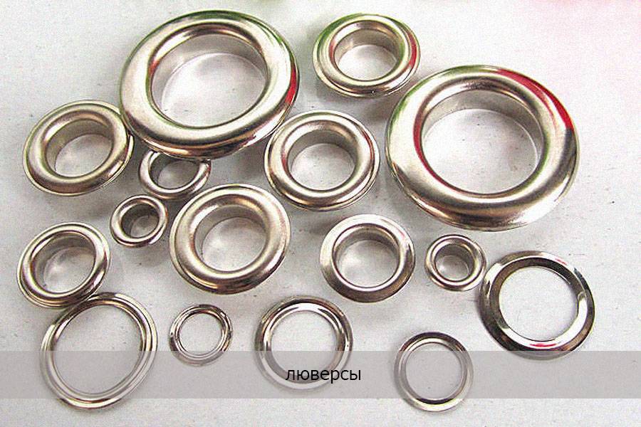 Люверсы (блочки) — металлические или пластмассовые детали, которые вставляют в отверстия ткани или кожи. Могут быть различных цветов, форм и диаметров.