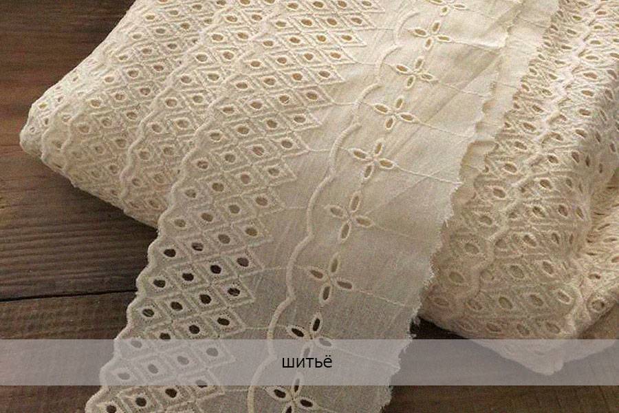 Особый вид ткани — кружевной. По составу это смешанный материал, но вот по способу производства — совершенно уникальный. Известное во всем мире вологодское кружево как художественный промысел зародилось в Вологде в начале 19 века. Именно оттуда в столицу и Москву поступали готовые вологодские кружева с уникальными узорами.
