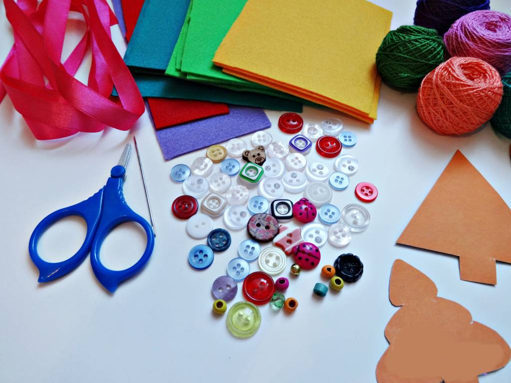 Готовую текстильную ель вам потребуется декорировать. С этой целью применимы такие материалы: