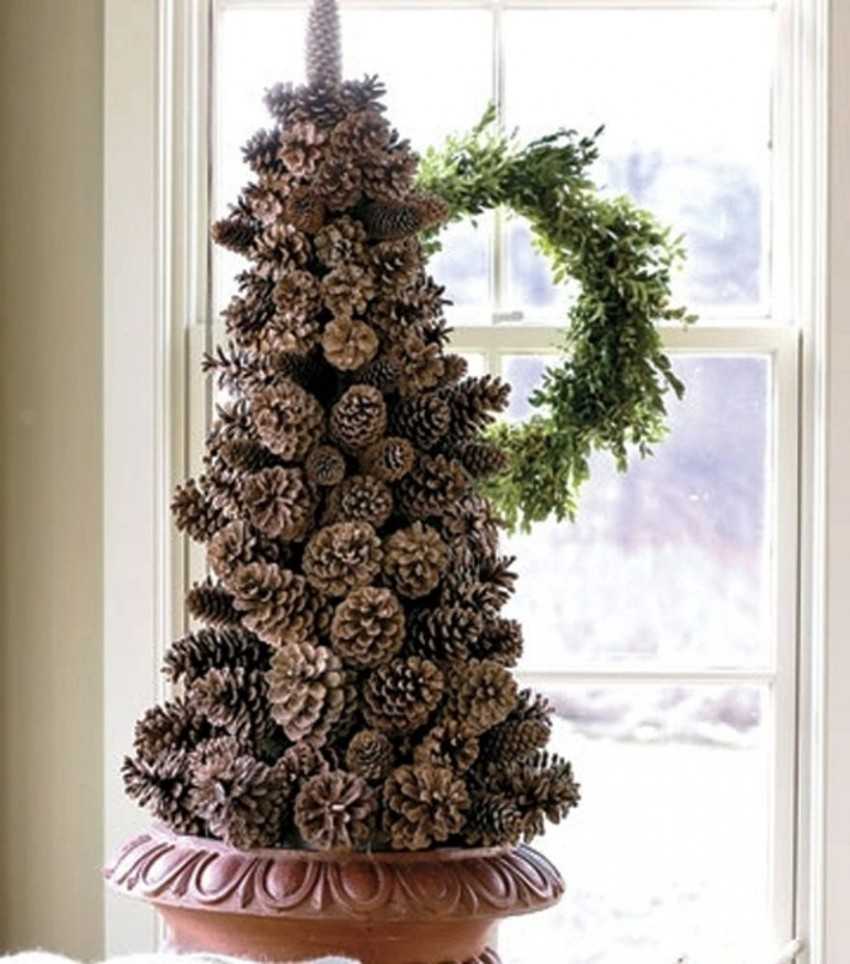 Новогодняя елка из еловых шишек и шишек сосны