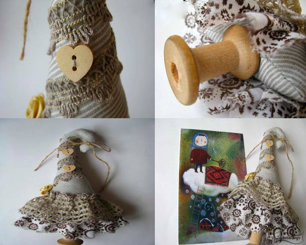 Срезать под корень в лесу зелёную пышную красавицу неимоверно жалко. Не для того она росла столько лет и хорошела, чтобы постоять недели две в квартире – и быть пущенной на дрова. Тем более, что в наше время существует великолепная возможность не только приобрести искусственное дерево отменного качества, но и в комплекте к ней сделать елку из ткани своими руками. А к такой елке можно добавить вязанных ангелочков или вязанные елочные игрушки. При чём такая поделка может не только украсить квартиру, но и её вполне можно подарить другу в качестве новогоднего подарка.Тем более, что информацию о том, как сшить ёлку из ткани в виртуальной сети можно найти немерено – и каждая такая поделка будет по-своему хороша и интересна.