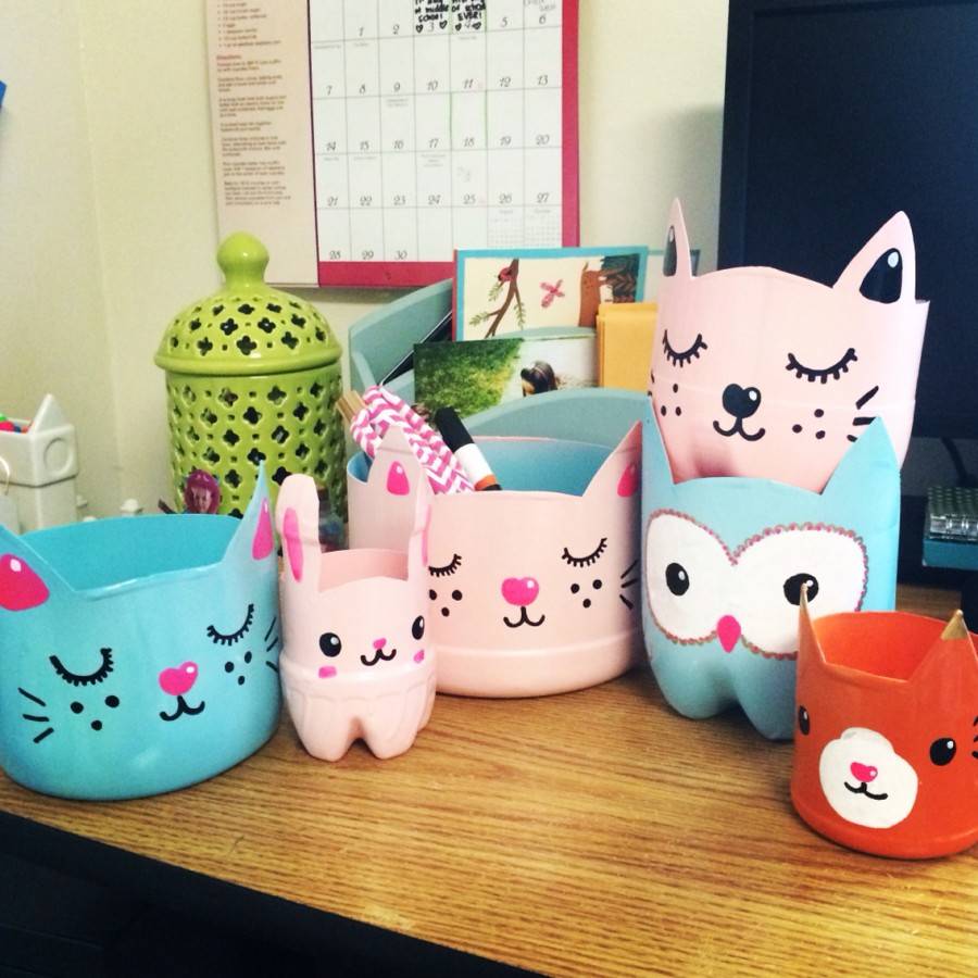 Первое, что приходит на ум, когда мы говорим «поделка из пластиковой бутылки», − это, конечно, ёмкости для хранения. Тут вариантов может быть тысячи.