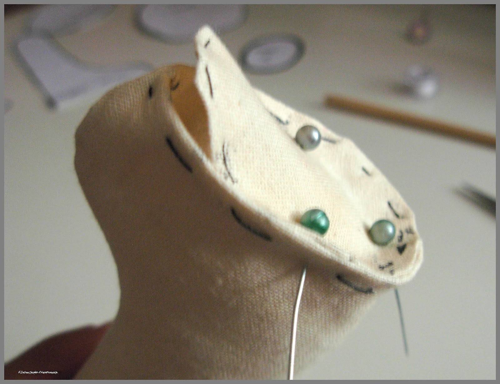 - Возьмите выкройку ноги с ботинком и потайным швом пришейте ступню к ним.