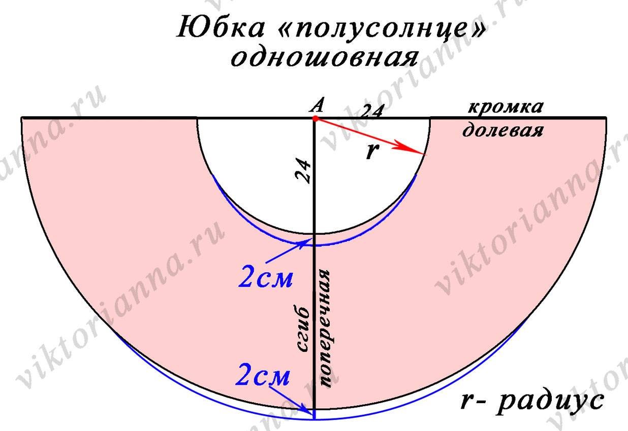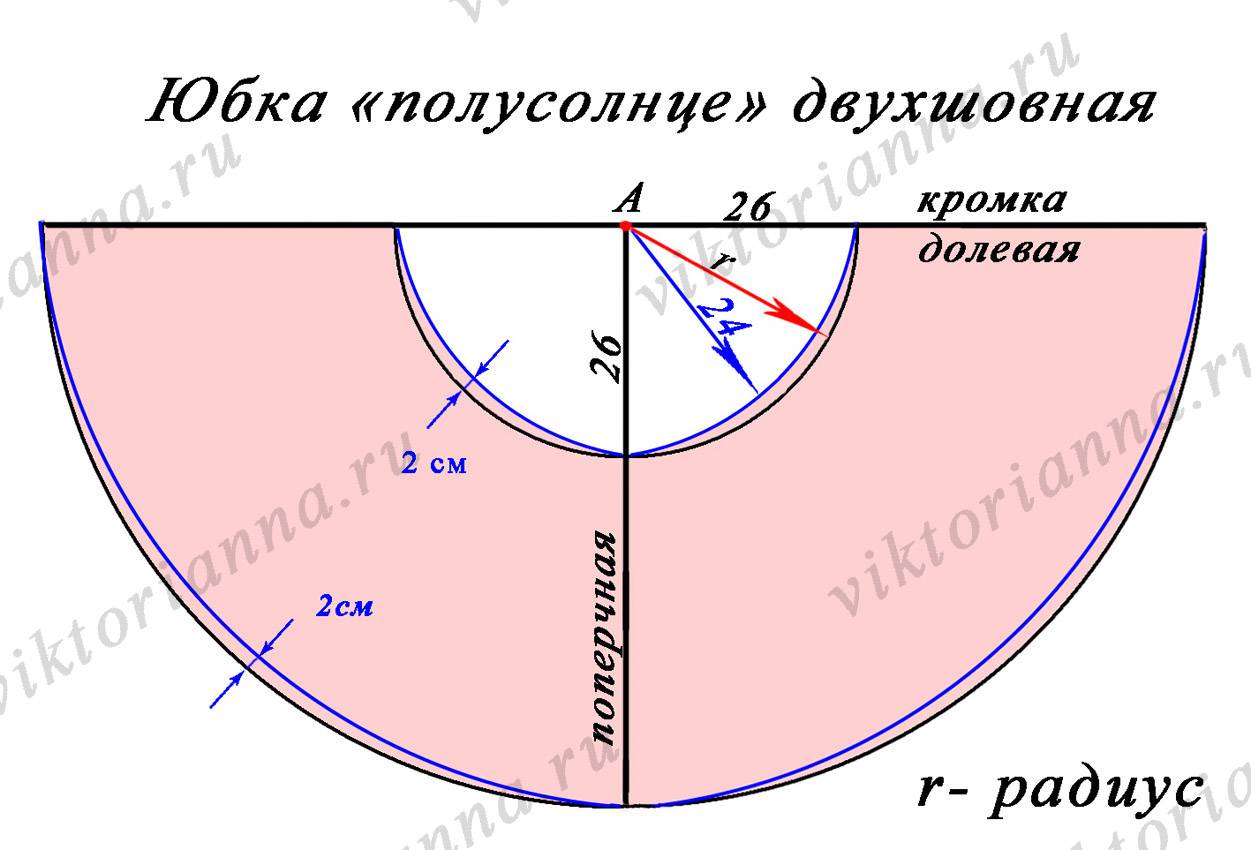 где К – коэффициент, зависящий от степени расклешенности юбки. Для юбки солнце он равен 0,16.