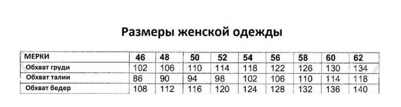 Определить соответствие своих параметров размерам можно по нижеприложенной таблице.