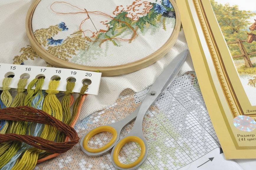 Обязательно потребуется ткань, по которой удобно вышивать крестом, игла с достаточно большим ушком, и пяльцы, для удобства и высокого качества выполнения работы. Нитки лучше брать именно мулине, так как композиция будет смотреться более профессионально выполненной.