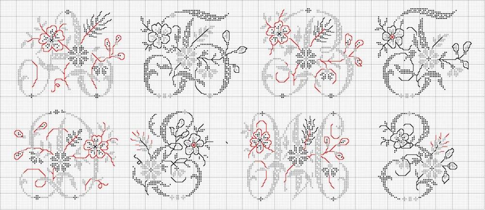 В этом варианте большое разнообразие схем пригодится новичку. Выбрать интересную для себя не составит сложности. Но многоцветные или сложные, с вензелями и орнаментом, пока выбирать не стоит.