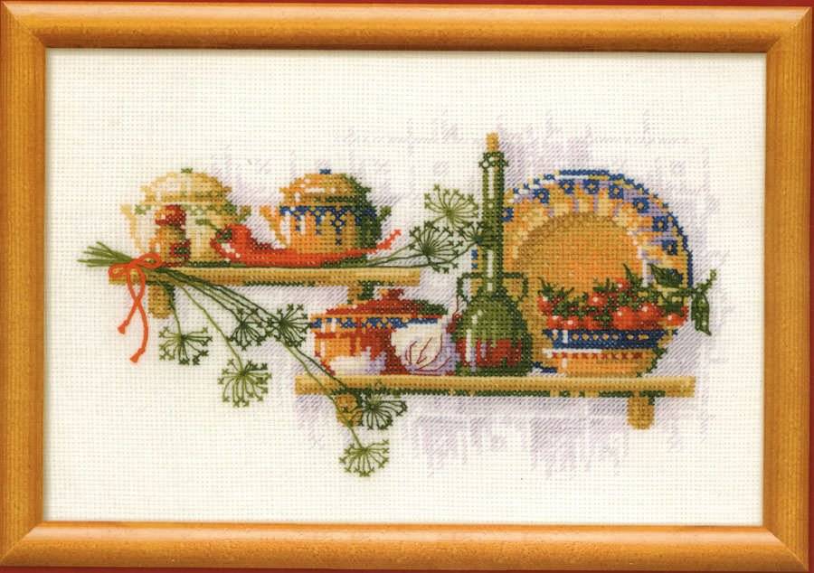Кухня – уютное теплое место, в котором начинается день за завтраком и заканчивается за ужином и, конечно, хочется провести это время в уюте и комфорте. Уют кухни складывается из милых мелочей, красивых салфеток, симпатичных вышитых фартуков и прихваток, также приятное, светлое пятно создаст красивая вышитая крестом картинка, вставленная в рамку или вышитые часы, как, например, эти милые аксессуары, представленные на фото.