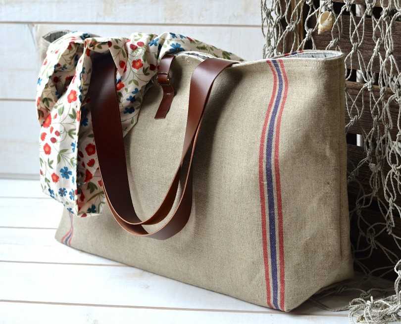 - Пришиваем подкладку и обрабатываем верхние края готовой сумки.