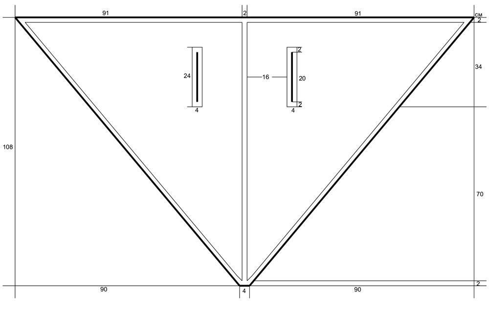 В развернутом виде модель представляет собой прямоугольник с двумя прорезями для рук.
