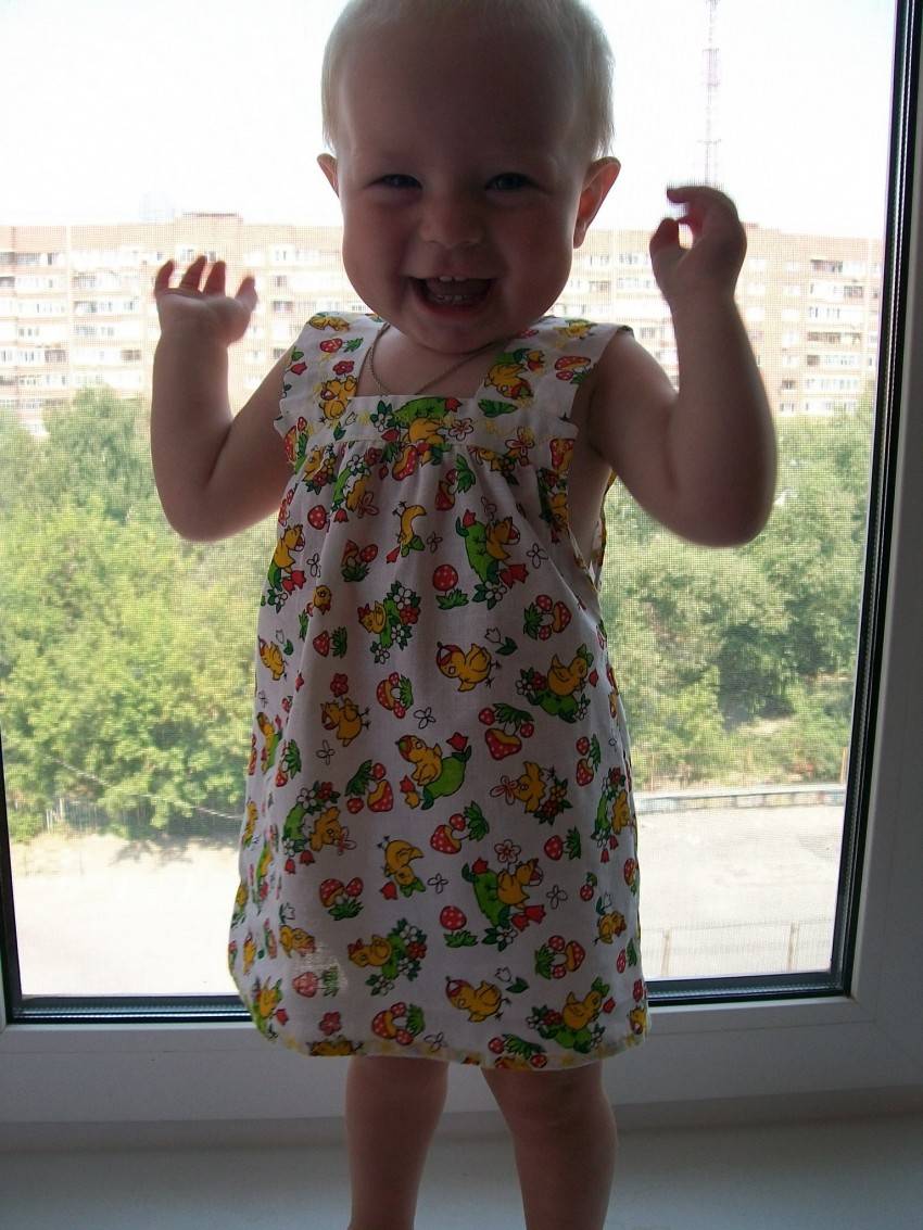 Для этого необходимо всего лишь отрезать ей верх, всё остальное, как и в первом варианте — длина и ширина сарафана варьируются в зависимости от желания.
